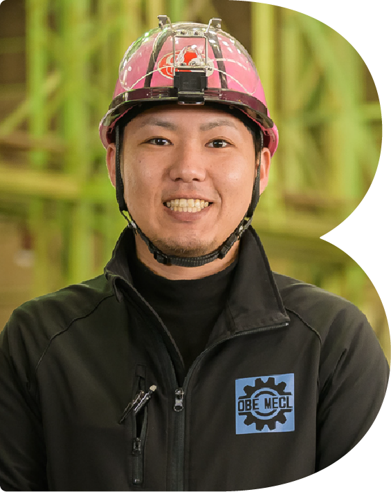 おべ工業は、クレーン補修をはじめ、鉄工・配管・重量物の取扱い・足場など、各分野のスペシャリストがそろっている会社です。やる気次第で、現場で必要な幅広い専門知識を学べるのが大きな魅力だと思います。社内の風通しもよく、困ったことがあれば部署や立場を越えて助け合える雰囲気があります。一人で抱え込まず、チームで前へ進める環境です。