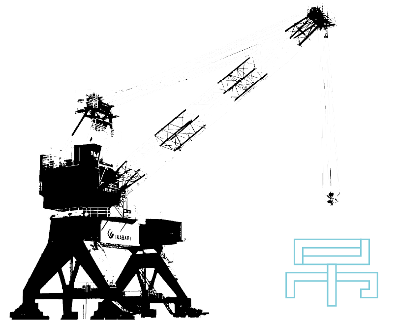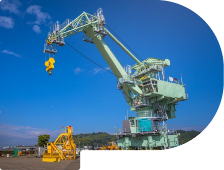 造船用クレーンは、大型船をつくるために欠かせないクレーンです。船体ブロックや大型部材を扱うため、背が高く、重い荷物を高い位置まで安全に吊り上げられるのが特長。ジブクレーンの中でも最大級のスケールをもち、造船所の工程を支える“主役級”の存在です。大きいからこそ、安定性と正確な操作が求められるクレーンでもあります。