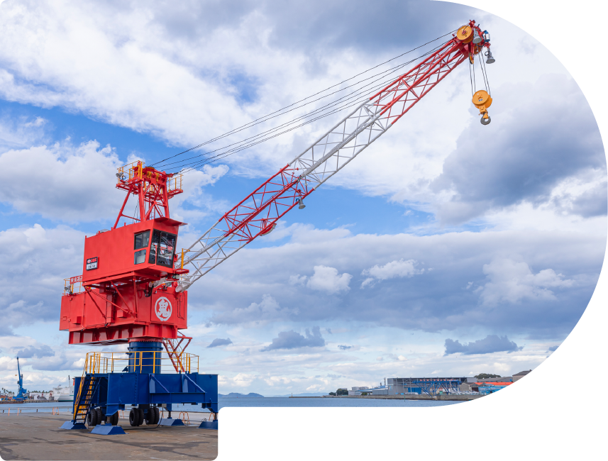おべ工業がつくっているのは、港や造船所、工場などで毎日動き続けるクレーンと、その周辺設備です。一般港湾荷役、多目的、橋型、天井、造船用、マリーンまで、使われる場所や荷物に合わせて一台ずつオーダーメイドで設計・製作しています。大きな設備ほど「安全に動く」「扱いやすい」「長く使える」が大切。現場の声を聞きながら、物流とものづくりを気持ちよく回す一台を届けています。