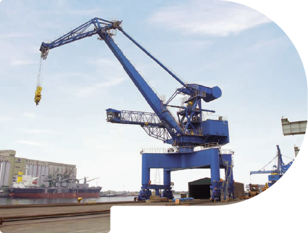 主に港湾の岸壁やふ頭、荷さばきヤードで使用されます。コンテナターミナルをはじめ、鋼材・木材など重量物を扱う荷役拠点、セメントや穀物といったバルク貨物の取扱い現場など、港のさまざまな場所で稼働しています。大量の荷物を「安全に、確実に、滞りなく」動かすことが求められる物流の最前線で、港の流れを支える重要な役割を担っています。